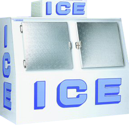 The 60 cubic foot outdoor ice merchandiser’s cold wall cooling system has a 1/3 hp compressor and uses eco-friendly R-448A refrigerant to maintain proper cabinet temperatures.